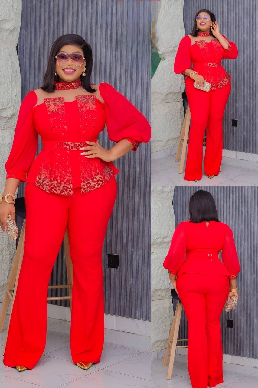 Red Sequin two pcs Pant Suit , Classy Evening Pant and Top